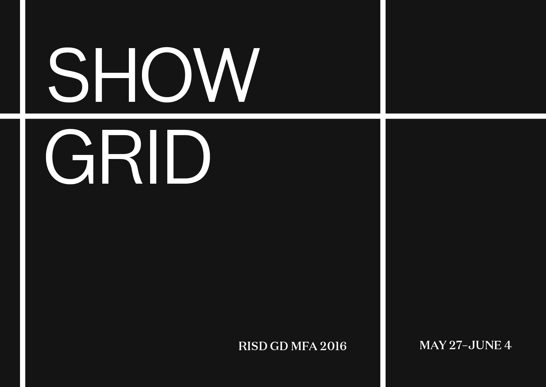Invitation sets and a poster for the collaborative exhibition Show Grid that took place at Rhode Island Convention Center in 2016. The exhibition unveils the underlying structure, methods and idiosyncrasies of class of 2016 in graphic design MFA at RISD.